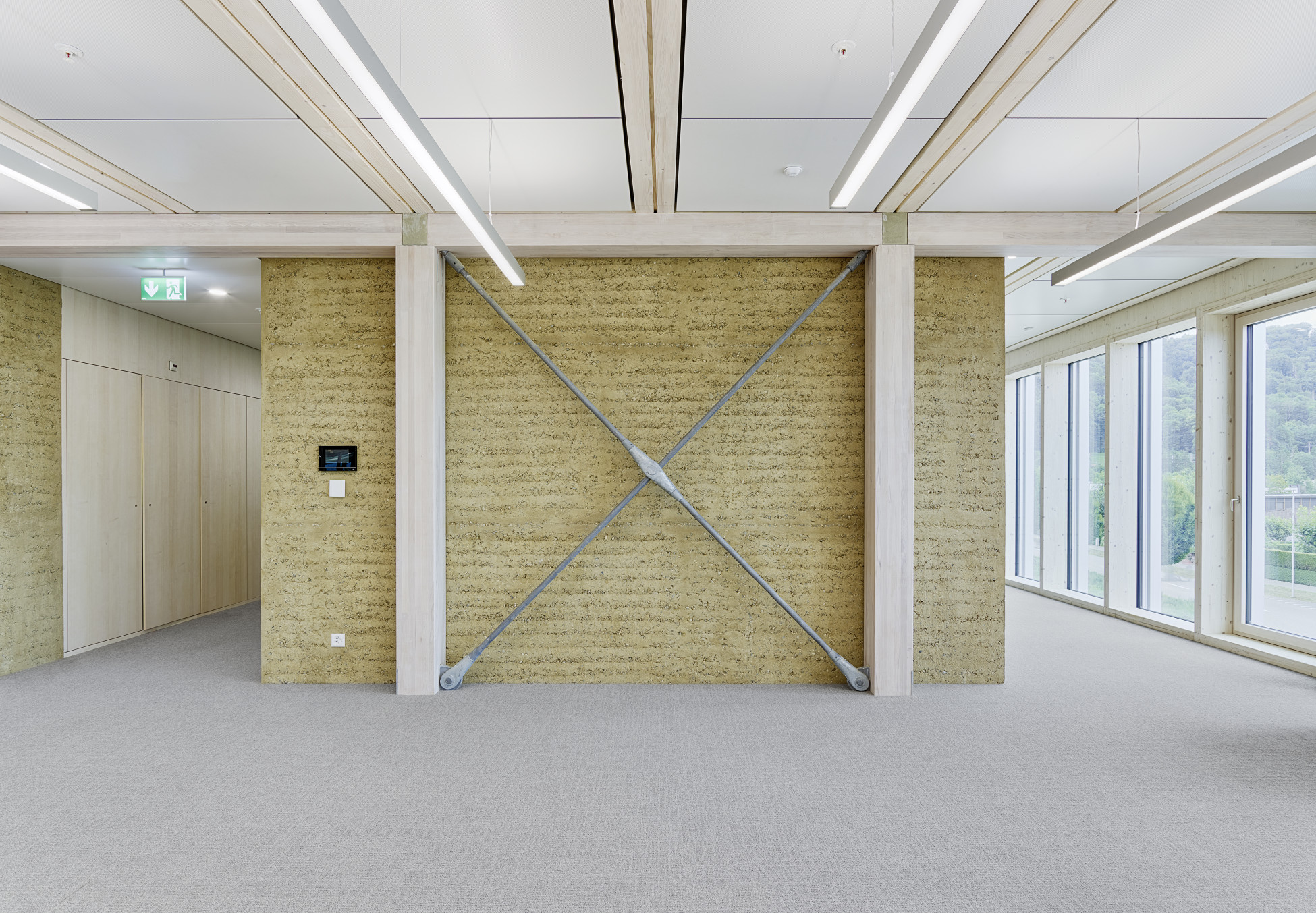 Durch die Verwendung von natürlichen und kreislauffähigen Baustoffen wie dem Lehm kann nicht nur der CO2-Fussabdruck reduziert werden, es entstehen auch geschlossene Materialkreisläufe anstelle der linearen Materialnutzung. Der Aushub aus der Baugrube wird zum Bauen verwendet, anstatt dass er als Abfall deponiert werden muss. Die aus Lehm erstellten Wände sind deshalb nicht nur nachhaltig, sie sorgen mit ihrer Masse und Atmungsaktivität auch für ein optimales Raumklima.