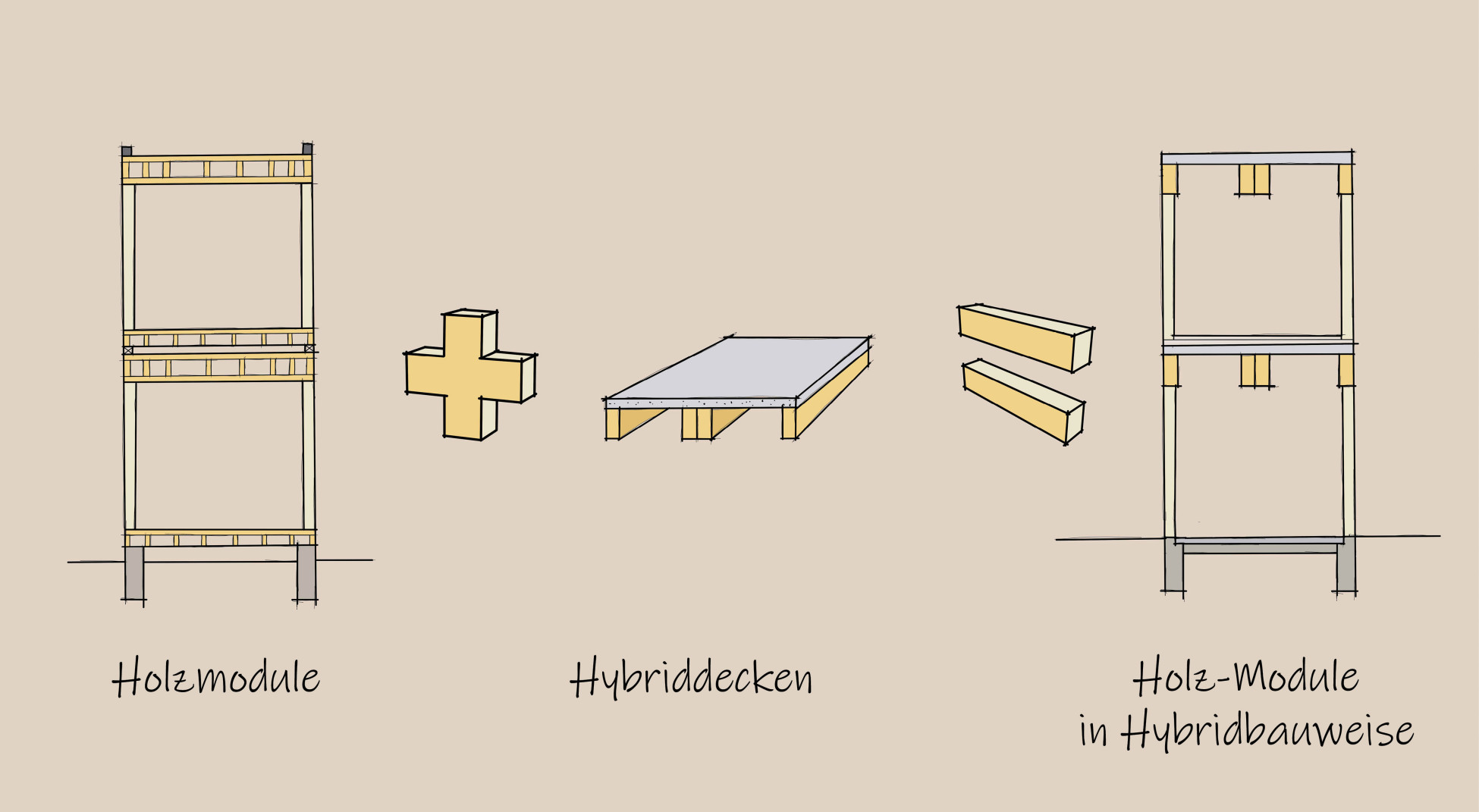 Unsere Module in Holz-Hybridbauweise kombinieren Module mit innovativen Holz-Betonverbund-Decken und bieten eine nachhaltige sowie leistungsstarke Lösung.