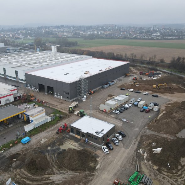 Inbetriebnahme der neuen Produktionshalle in Sinsheim. In Zukunft werden auch in Deutschland Projekte im Bereich Holzmodulbau und Systembau realisiert. Die neue Halle (ca. 4'600 m2) ermöglicht grössere Produktionskapazitäten, um der steigenden Nachfrage in Deutschland gerecht zu werden und die Lieferzeiten zu optimieren.