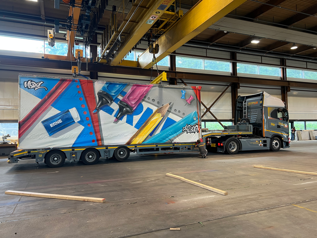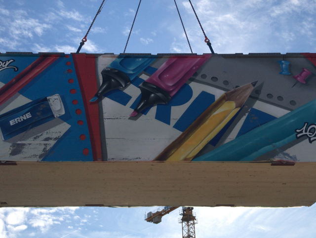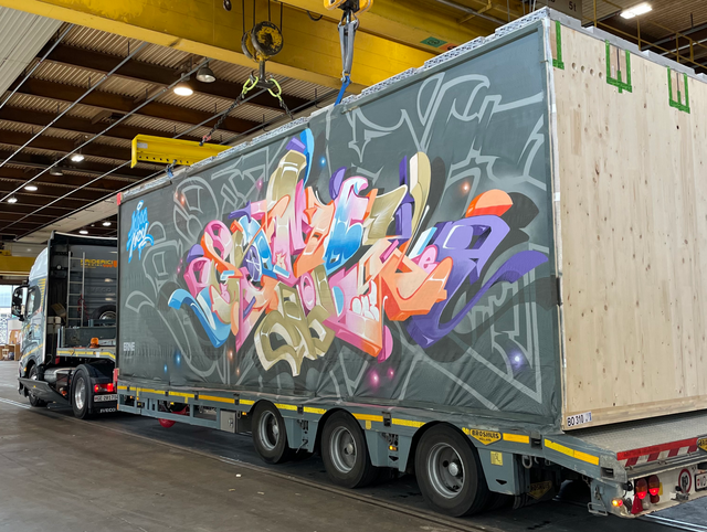 À l'occasion de cette étape importante, ce module anniversaire a été orné de graffitis réalisés par l'artiste bâlois Timo Waldner de l'atelier wandART. Car emprunter de nouvelles voies et relever les défis avec des solutions innovantes fait partie de notre culture d'entreprise. 10'000 modules sont également le symbole d'un développement constant, de la compétence professionnelle avérée de nos collaborateurs et d'une création de valeur durable.