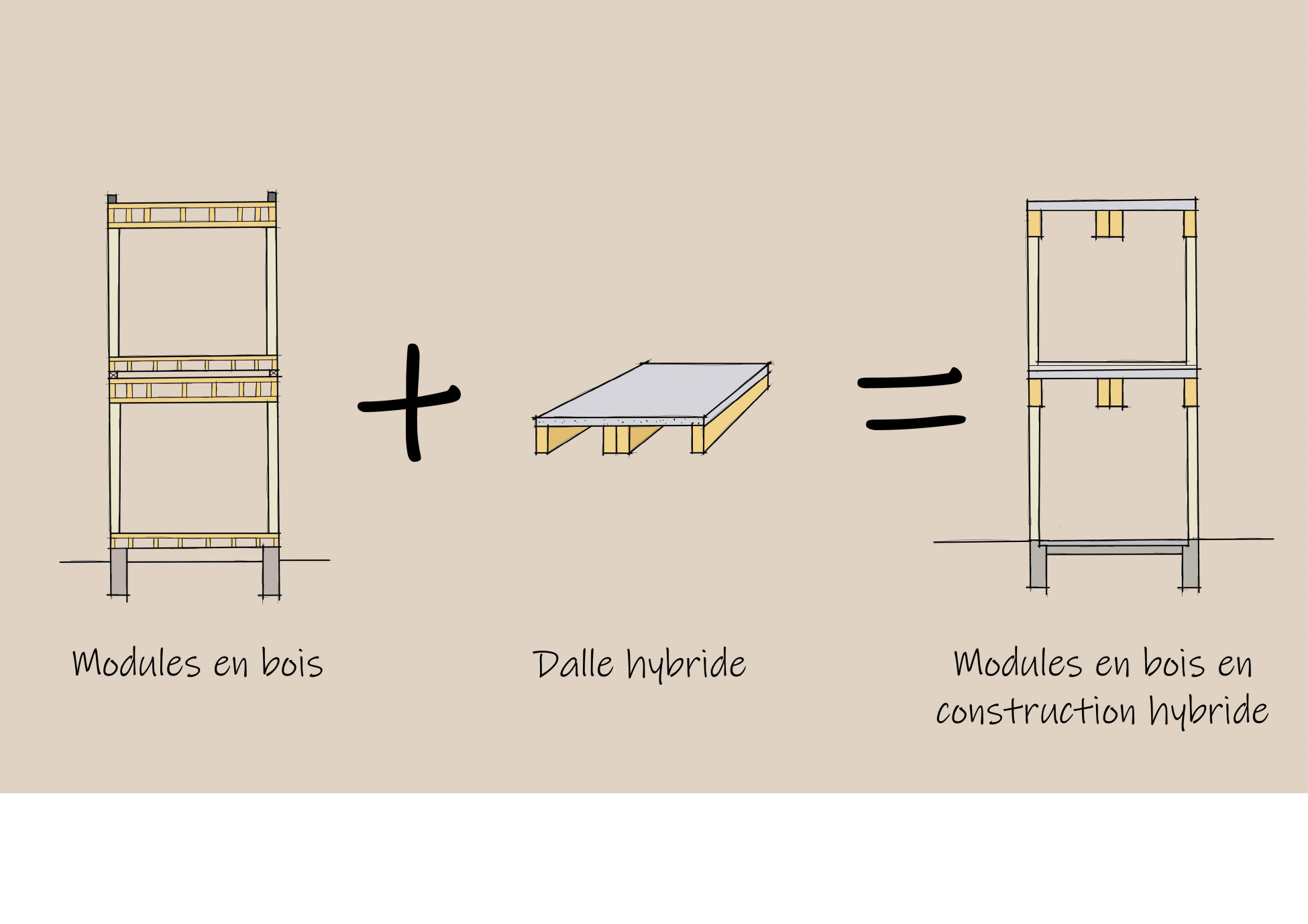Nos modules en construction hybride bois combinent des modules avec des planchers mixtes bois-béton innovants et offrent une solution durable et performante.