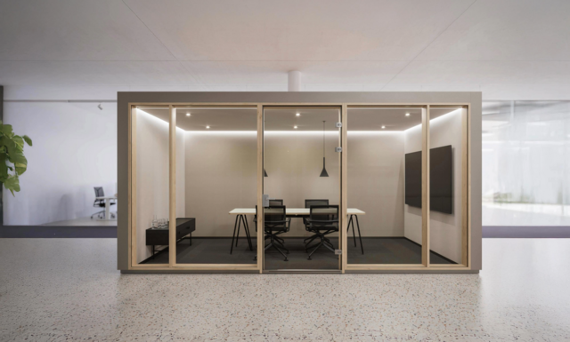 Système flexible de pièce dans la pièce pour les salles de réunion ou de focalisation.