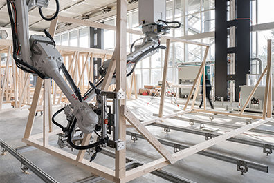 Sur le bâtiment NEST de l’Empa et de l’Eawag à Dübendorf, huit chaires professorales de l’EPF de Zurich construisent, avec des partenaires économiques, la DFAB HOUSE de trois étages, dans le cadre du pôle de recherche national (PRN) Fabrication Numérique. Il s’agit là du premier bâtiment au monde à avoir été largement conçu, étudié et construit avec des processus numériques.