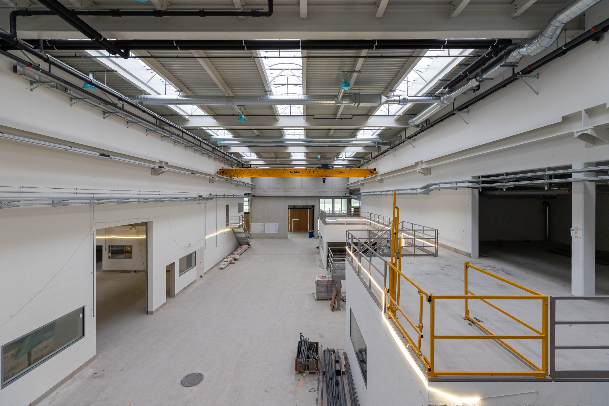 Les travaux de construction en béton d'ERNE AG Bauunternehmung avancent à grands pas : les travaux pour le passage de liaison, respectivement pour le passage souterrain entre le PSI et le PIA, sont dans les dernières phases. Par ailleurs, l'équipe de génie civil d'ERNE termine actuellement la pose des conduites industrielles. Les travaux de bétonnage de la halle des ateliers (halle B2) commenceront début mai.