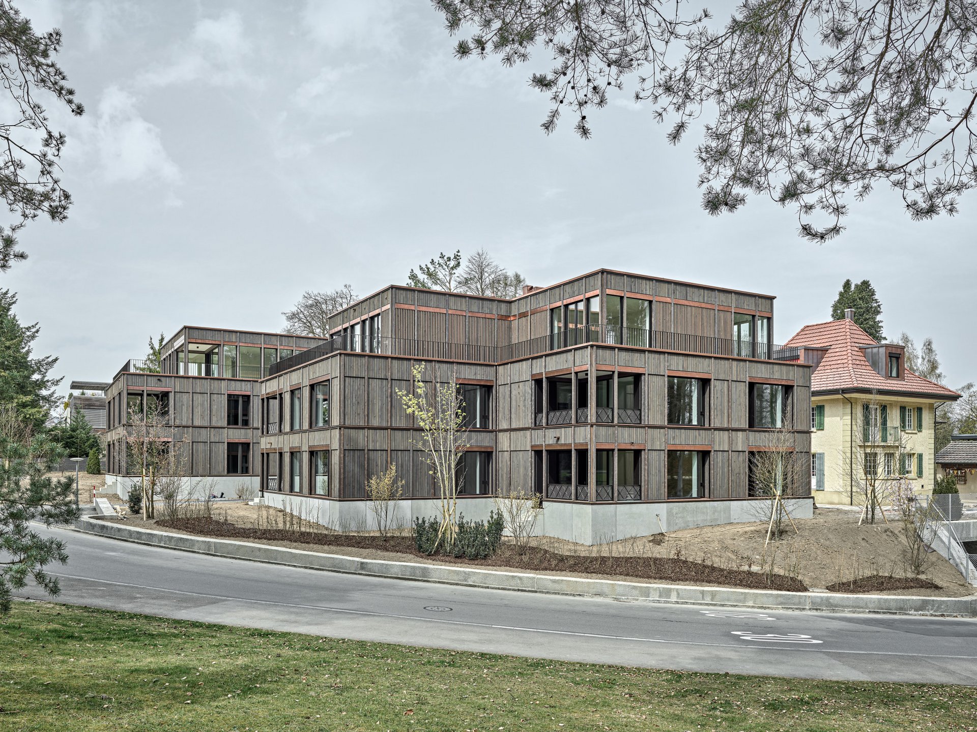 Immeuble collectif en construction hybride en bois.